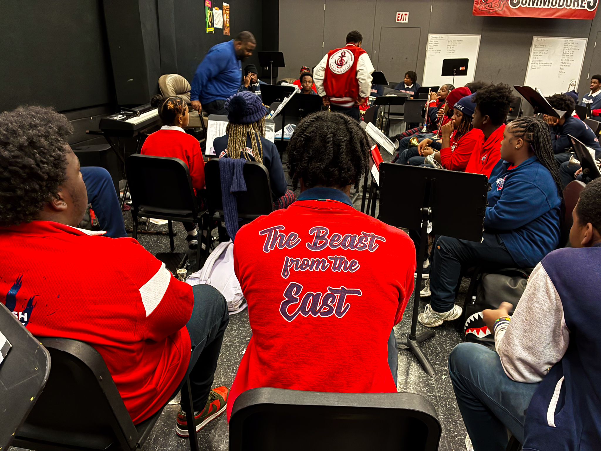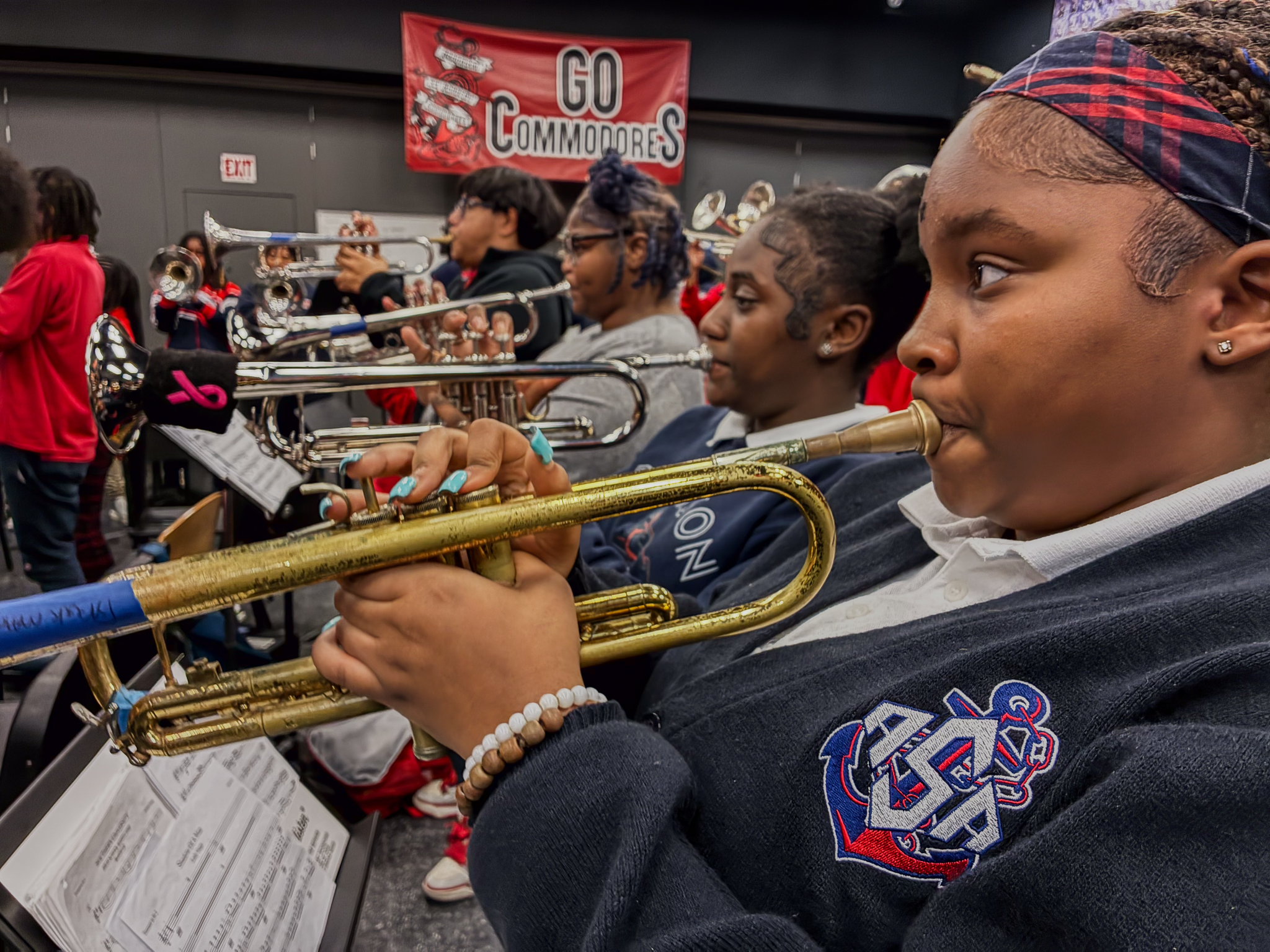 Tuba participant Willie Adams, a ninth grader, has solely been with the Abramson band since this fall. However after he fell into a short interval of despair this fall, his band helped him get previous it. “This band is household,” he stated. “All people is linked.”