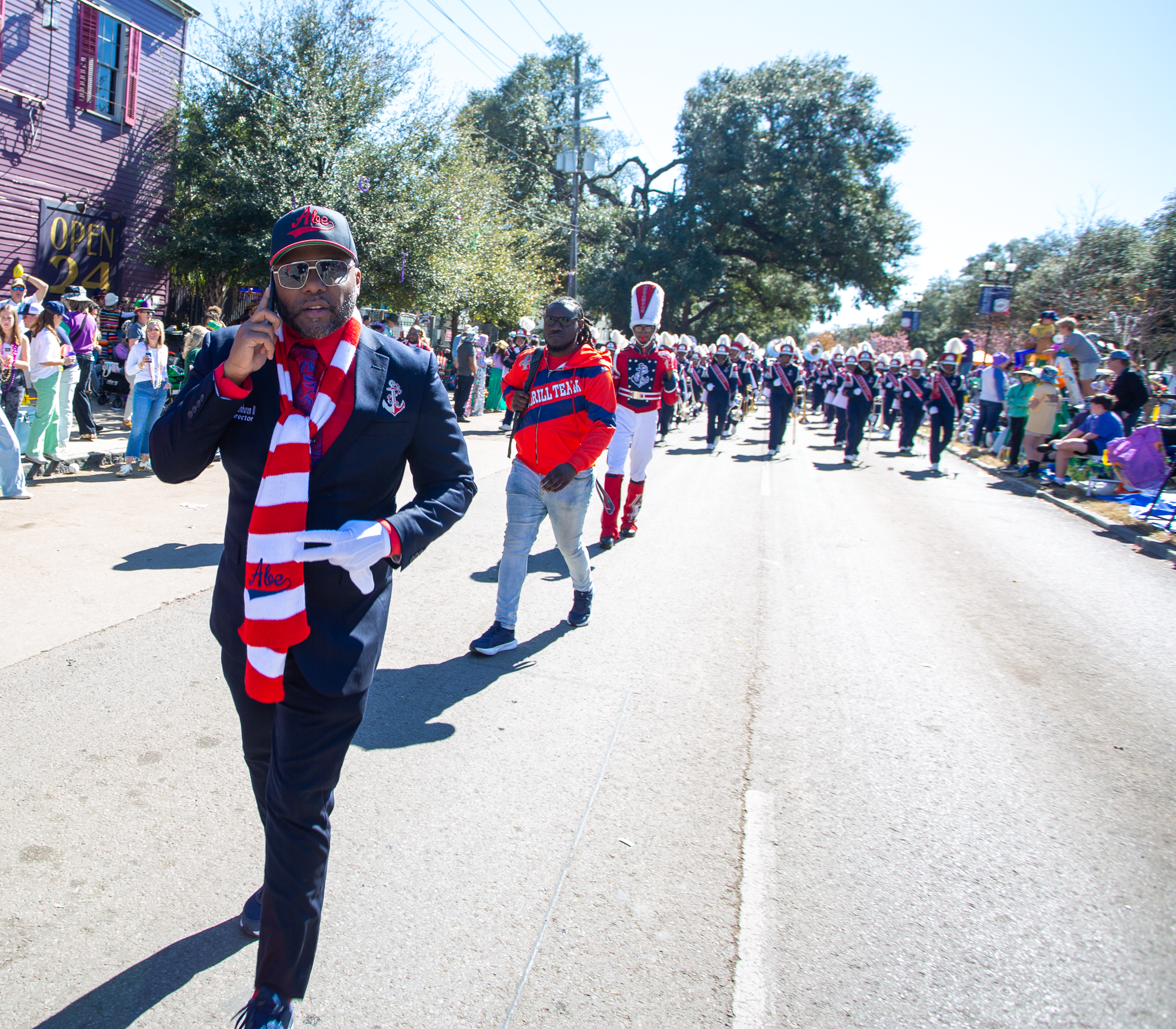 College students transferring across the bandroom had been lit by delicate afternoon gentle flowing in from overhead home windows, which turned the black partitions right into a muted grey. Because the solar got here in, it carried historical past with it—throwing the shadows of previous band trophies from the window sills onto the wall, alongside a rising variety of current awards nabbed below previous band administrators Jordan Harper and the present director, Todrick Carmouche. The latest honor got here only a few days in the past, a primary place earned within the Krewe of Symphony parade in Metairie.