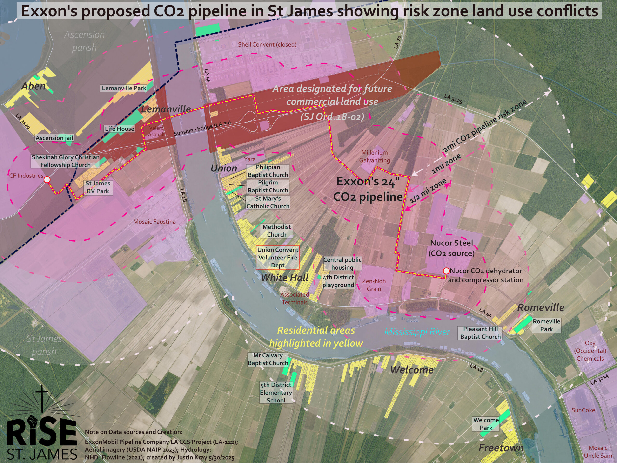 In St. James Parish, Exxon plans to put carbon pipeline alarmingly near houses, companies