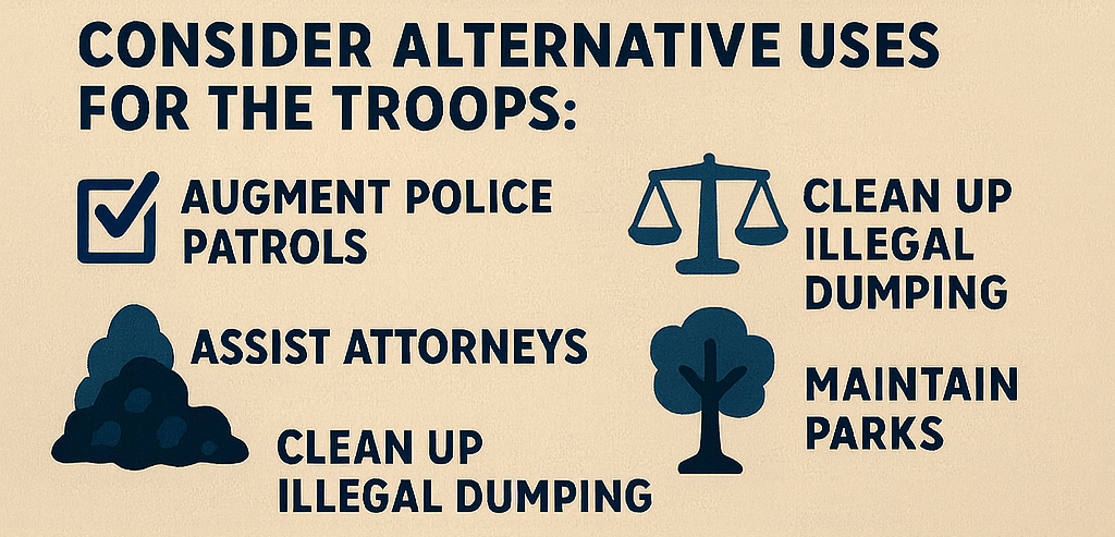 The selection earlier than us just isn’t between doing “nothing” and sending troops to patrol neighborhoods. The selection is between performative power and efficient crime prevention. Maintain the Guard in reserve—and if they’re deployed, use them the place they add capability with out crossing into policing.
