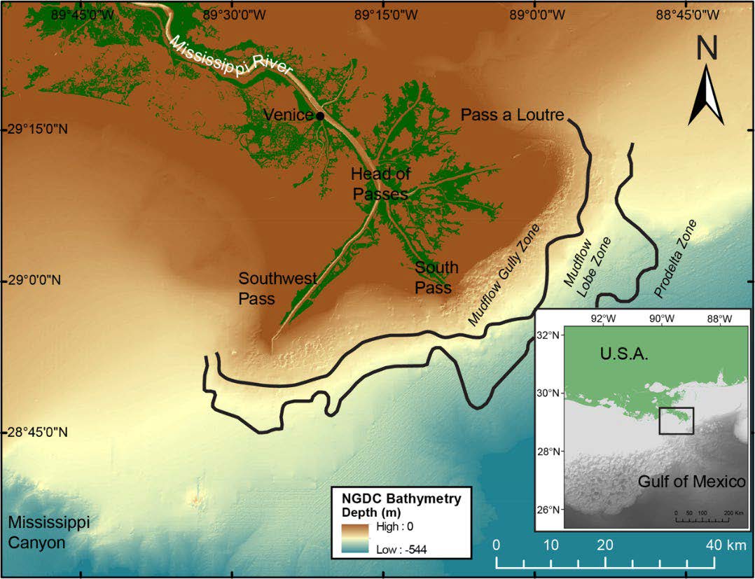 Above the Head of Passes, substantial quantities of sediment carried by the Mississippi River are misplaced by way of each pure and man-made channels, such because the quickly increasing Neptune Cross close to Buras, Louisiana, in decrease Plaquemines Parish. However most is misplaced nicely earlier than then.