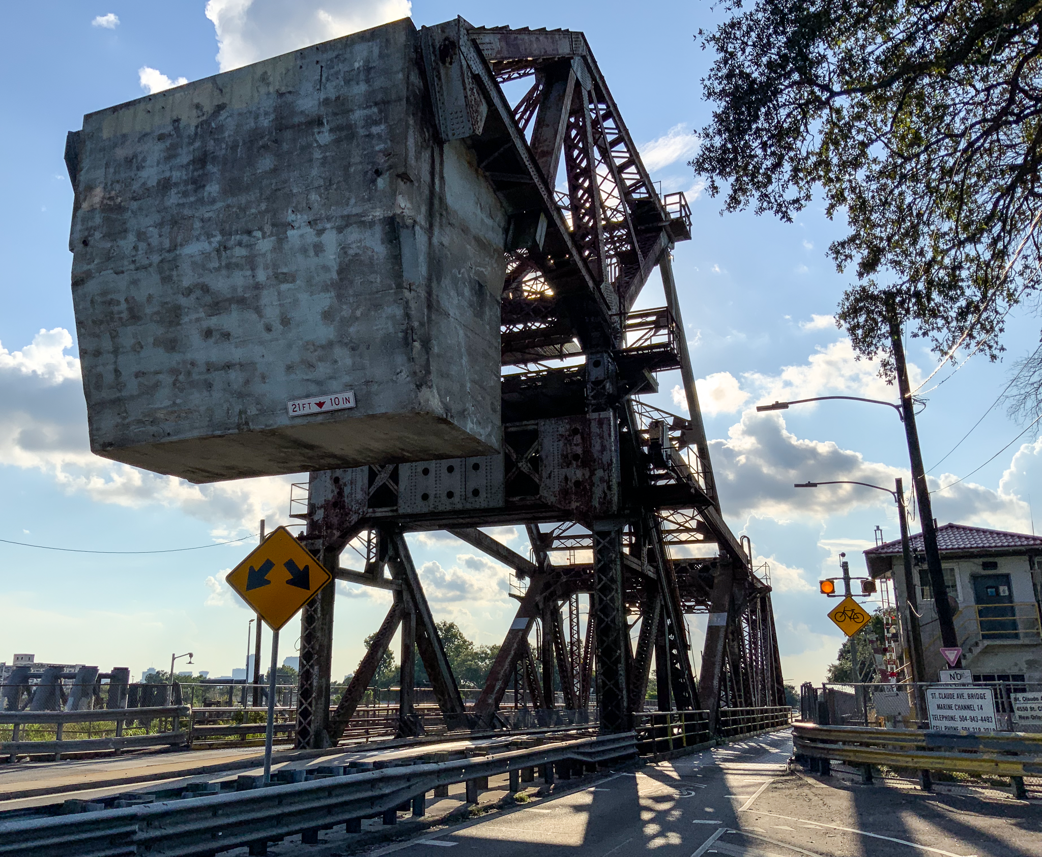 The four-lane bridge is a landmark and treasure, they are saying. Inbuilt 1919 by the Bethlehem Metal Bridge Company, it’s one of many nation’s final purposeful “bascule bridges,” by which a part of the bridge pivots upward to permit the canal visitors to maneuver by way of. (In your inside engineer, it’s price figuring out that the St. Claude bridge is even a rarity inside the bascule style: it’s what’s generally known as a “Strauss trunnion bascule bridge with a truss superstructure.” In layman’s phrases, that implies that the bridge goes up by rotating on mounted axles referred to as “trunnions,”, and makes use of a triangular “truss” construction to distribute weight.)